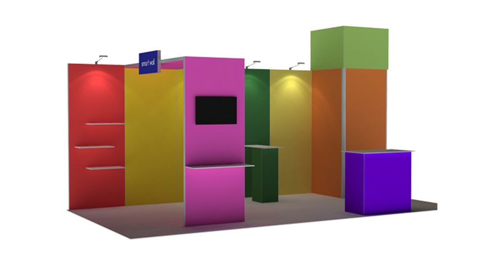 SmartWall principle: SmartWall system integrate different units such as wall panel,arch,light box, storage room,product display,monitor bracket and counter together. Connection between units are toolless,and it is quick and easy to set up and dismantling. We maximum the cost performance and guarantee the quality of the booth at the meantime. The surface of the frame can be made of board or elastic cloth decoration. The surface can be solid panel or stretch textile with dye sublimation printing, which is foldable and wrinkle-resistant.