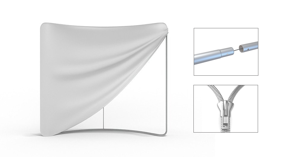 The TubeLine Display system is a portable display backdrop. The frame is Ø32 aluminum tubes, which can be quickly set up without tools.The dye sublimation printing graphic on stretch textile is vivid and colorful. The aluminum tubes are connected by spring pins, and the textile graphic is covered on the aluminum tube frame, and closed at the bottom with zipper.You can quickly and easily put the textile graphic on the frame, because the cloth is elastic.After the graphic is installed, it is smooth and not wrinkled.